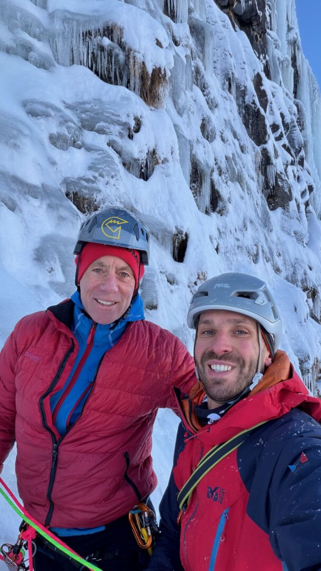 Chrisu in einer der Val Travenanzes Eissäulen, Feb. 2025